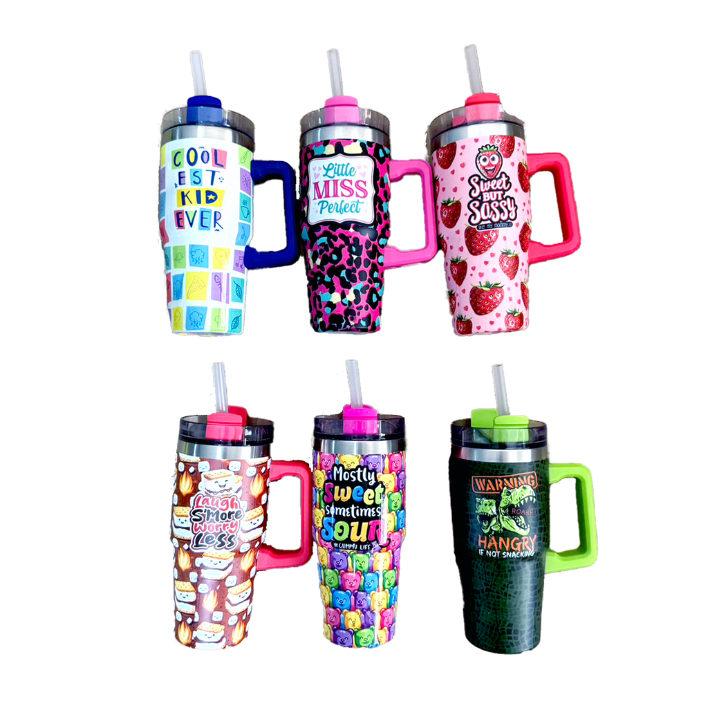 Are your kids looking for a drink n’ play adventure? The perfect way to keep drinks secure with BPA-free, non-spill, 16 oz insulated cups with smart lids and a flip straw. Make sure the adventure goes with you and wherever you go! Includes a variety of air-print artwork. 7 hours hot, 18 hours cold! All items pre-priced.